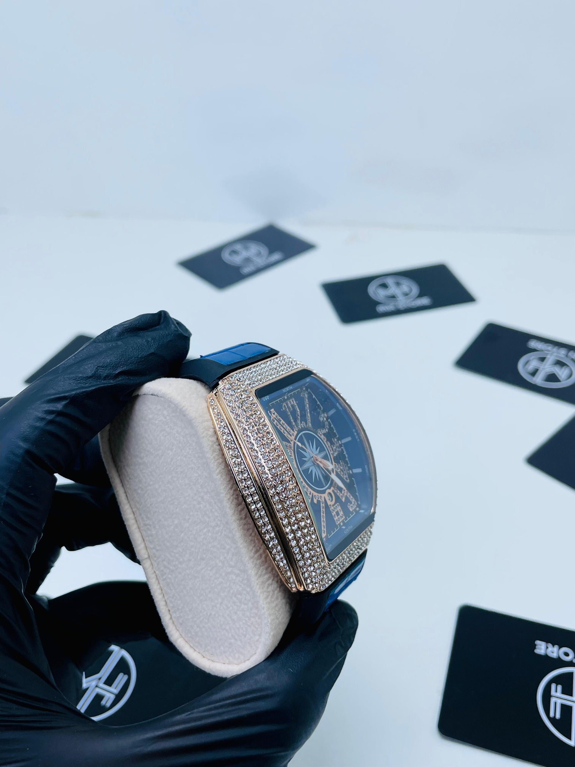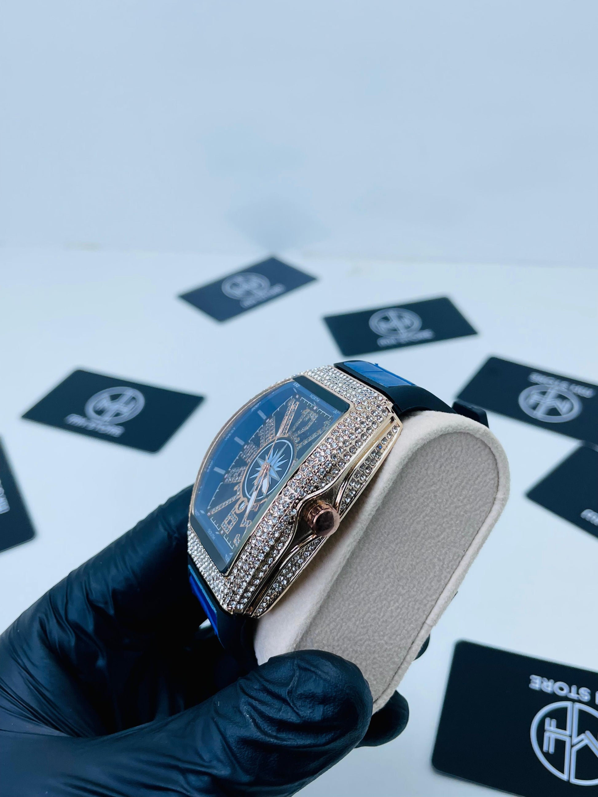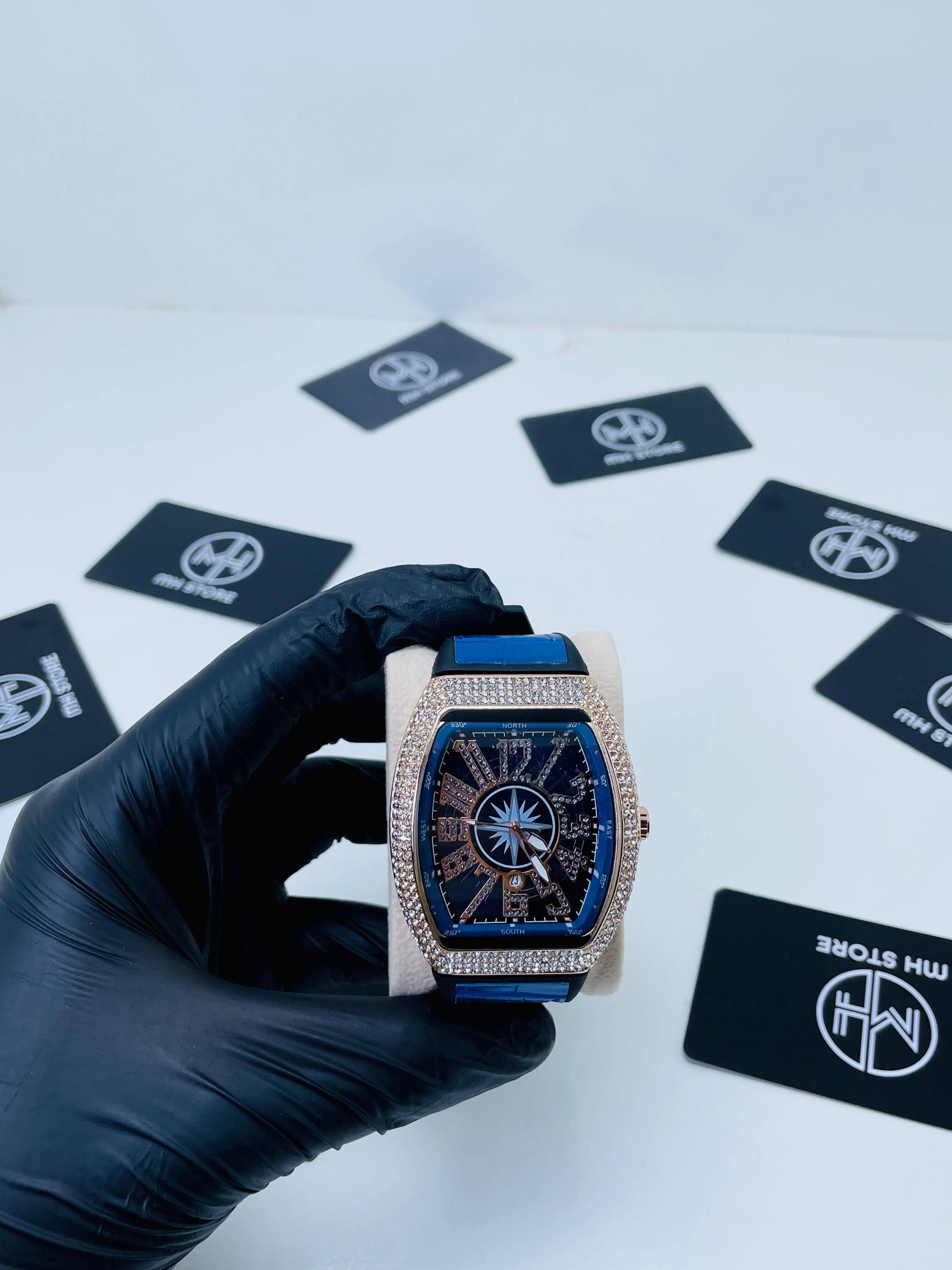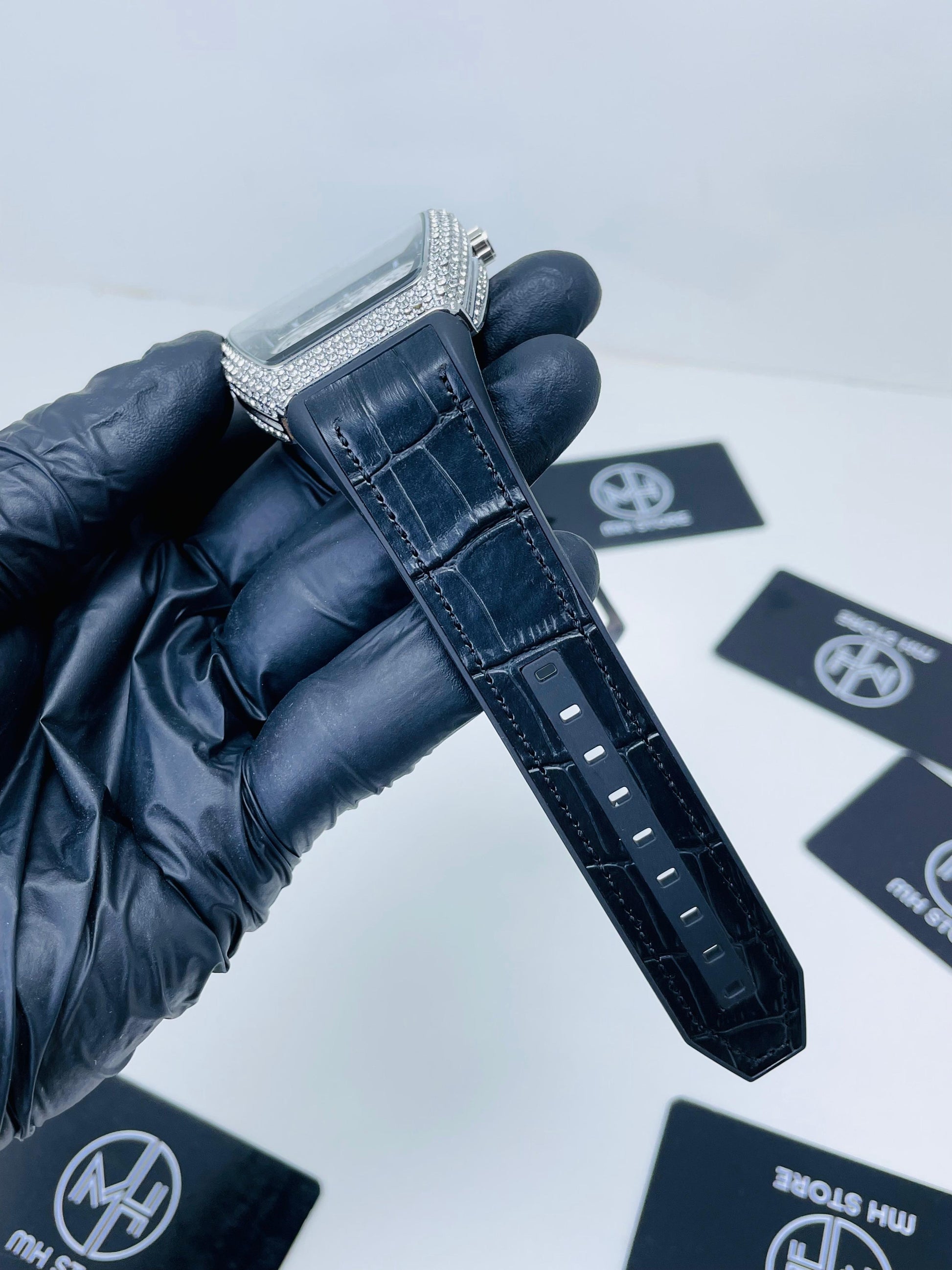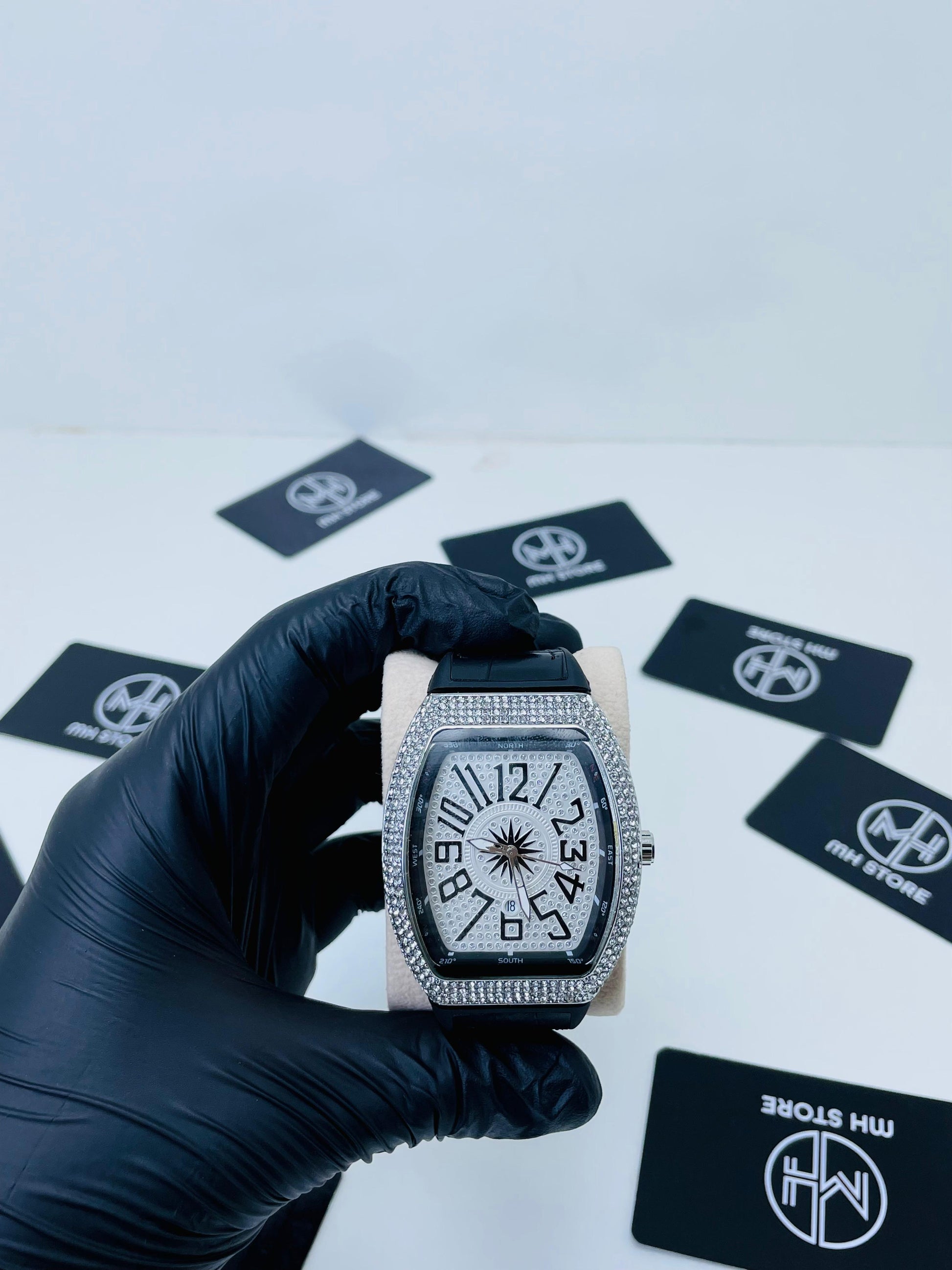 A timeless luxury watch that blends modern shine with classic elegance. The silver dial is beautifully accented with sparkling crystals across the bezel, while bold black numerals ensure a distinctive look. Designed for those who appreciate refined style, this watch is the ultimate statement of class.