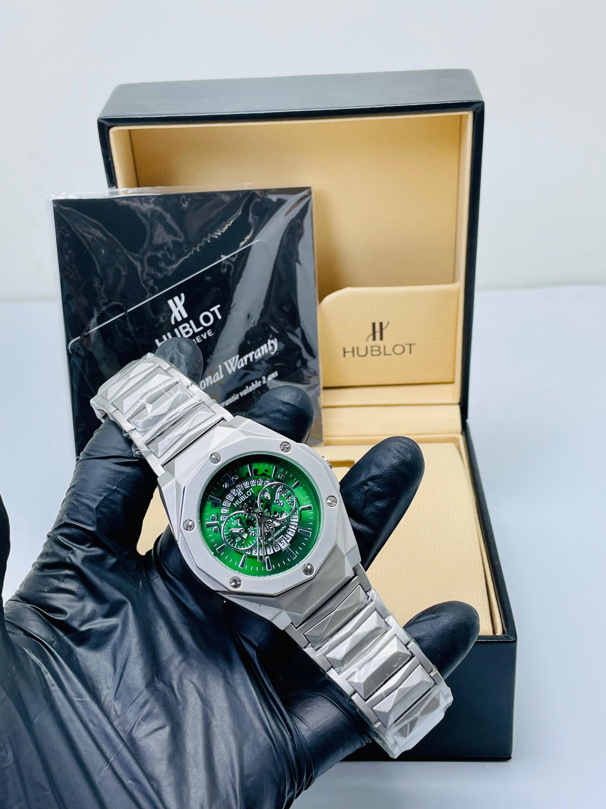 Elevate your wrist game with this premium watch, crafted with a bold octagonal bezel and a durable stainless steel body. Featuring a vibrant dial and multifunction subdials, this timepiece combines precision with style. Whether you're dressing up or going casual, it adds the perfect statement to your look.