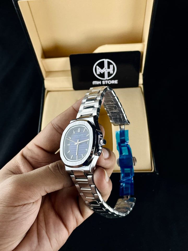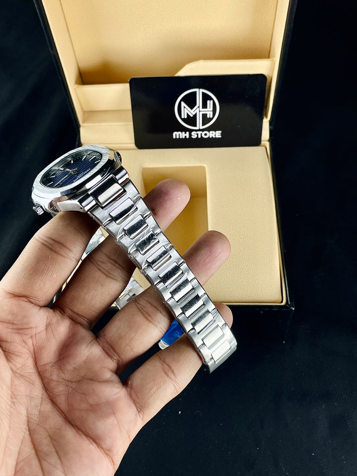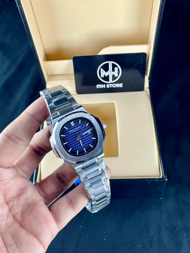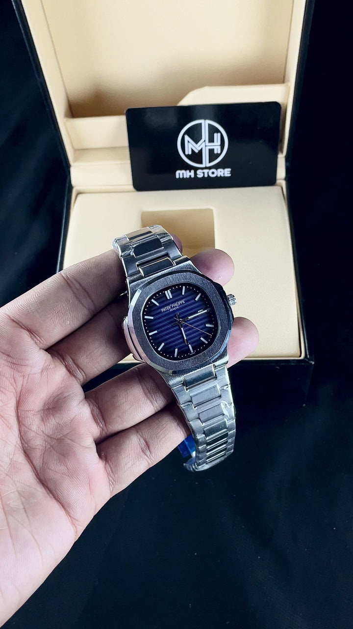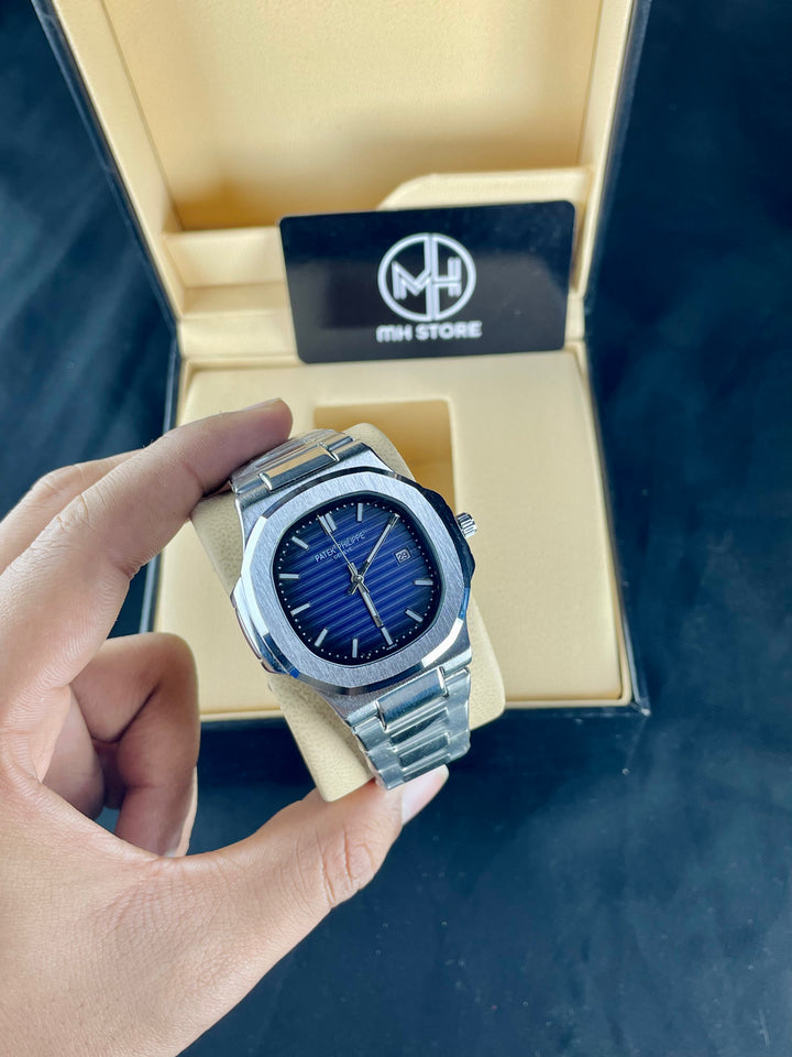 Experience refined luxury with this premium Semi-Auto Patek-style Nautilus timepiece, crafted for those who appreciate elegance, precision, and everyday versatility. Featuring a striking blue textured dial, luminous hands, and a sleek stainless-steel case, this watch brings a bold yet sophisticated presence to any wrist.